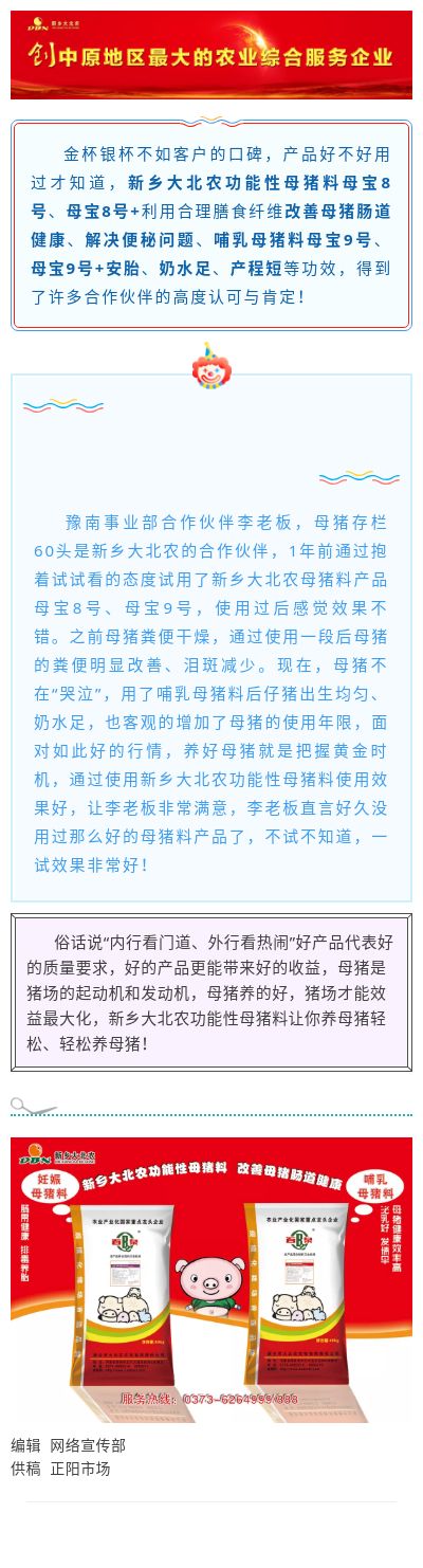 【产品聚焦】客户对新乡大北农功能性母猪料的赞赏与肯定
